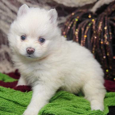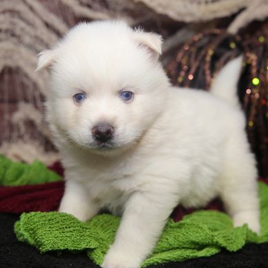 Blue eyed white male charting to be in the 25 pound range with a wooly coat. He looks like a real life polar bear with the sweetest disposition! $3,500